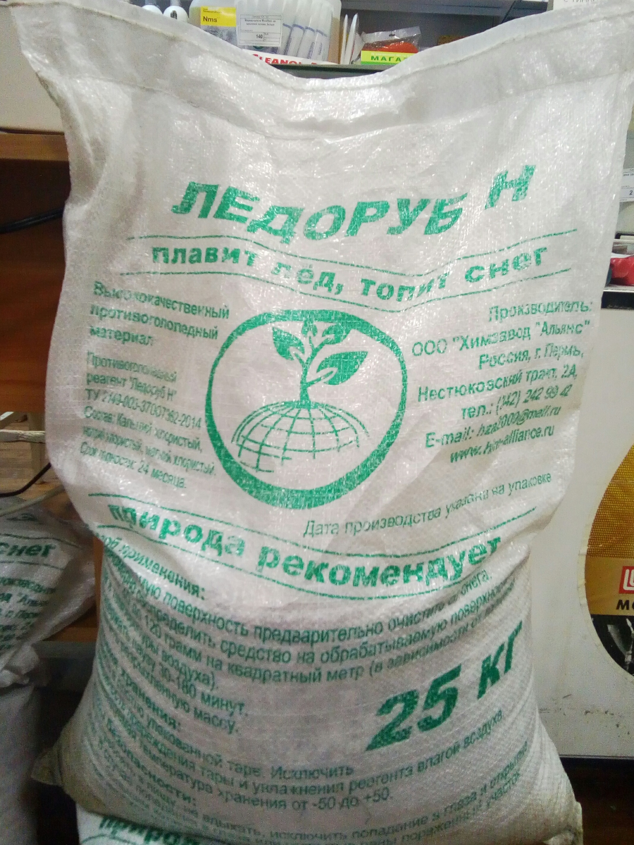 Противогололедное средство Ледоруб-Эко + пожаро- и взрывобезопасен, не токсичен и пригоден для перевозки любым видом транспорта. Может храниться на обычных складах и открытых площадках. При длительном хранении противогололедное средство на складах следует обращать особое внимание на целостность упаковки, также необходимо исключить попадание прямых солнечных лучей и осадков.