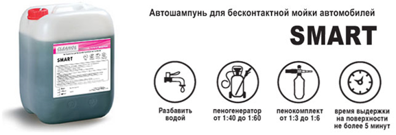 • Нанести пену на автомобиль: в летнее время - на сухую поверхность, зимой - на предварительно обработанную струёй воды высокого давления поверхность.